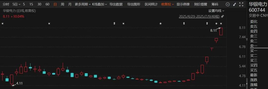 电力板块走强,华银电力7天6板,拓日新能涨停,韶能股份、、豫能控股涨超5%。