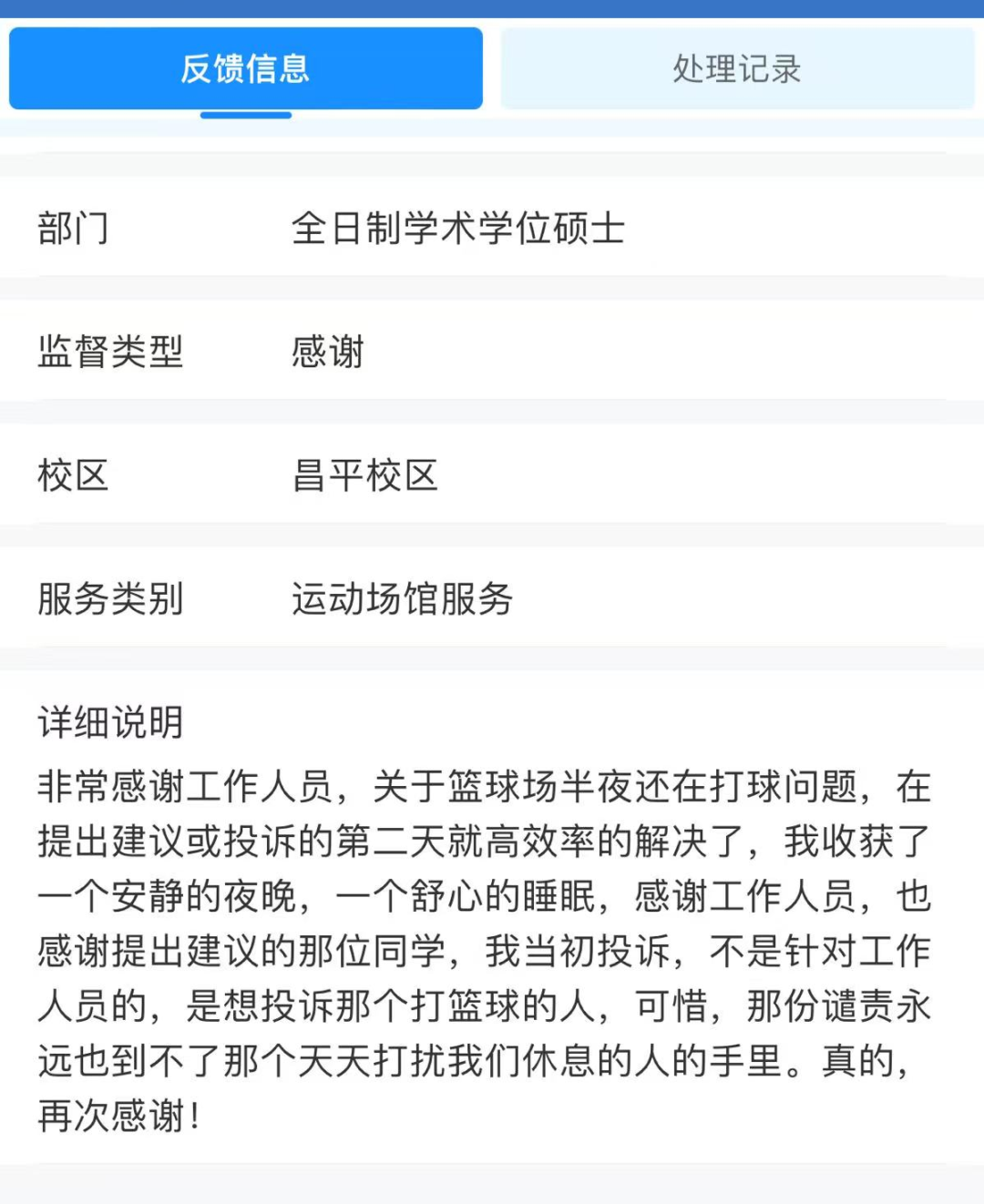 这些温暖的回响,如今有了更坚实、更便捷的承载平台——后勤E点通,它像一座用心搭建的桥梁,让“听见你”的渠道无限延伸。平台聚焦师生诉求,做到渠道统一,集中受理投诉、建议、感谢;高效流转,建立快速响应机制;闭环管理,诉求办理全程跟踪,确保句句有回应。3月28日上线至今,后勤E点通共收到并处理师生诉求576条。每一条,都被认真对待:能解决的,“马上办”;需规划的,形成项目“推动办”。句句有回应,是后勤不变的初心。