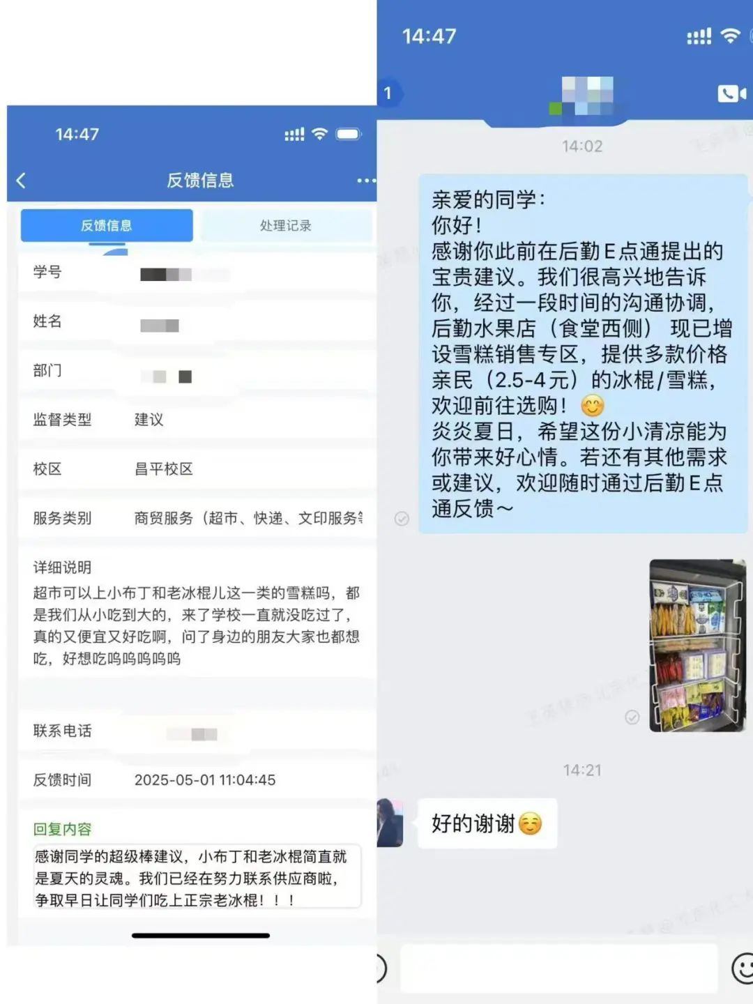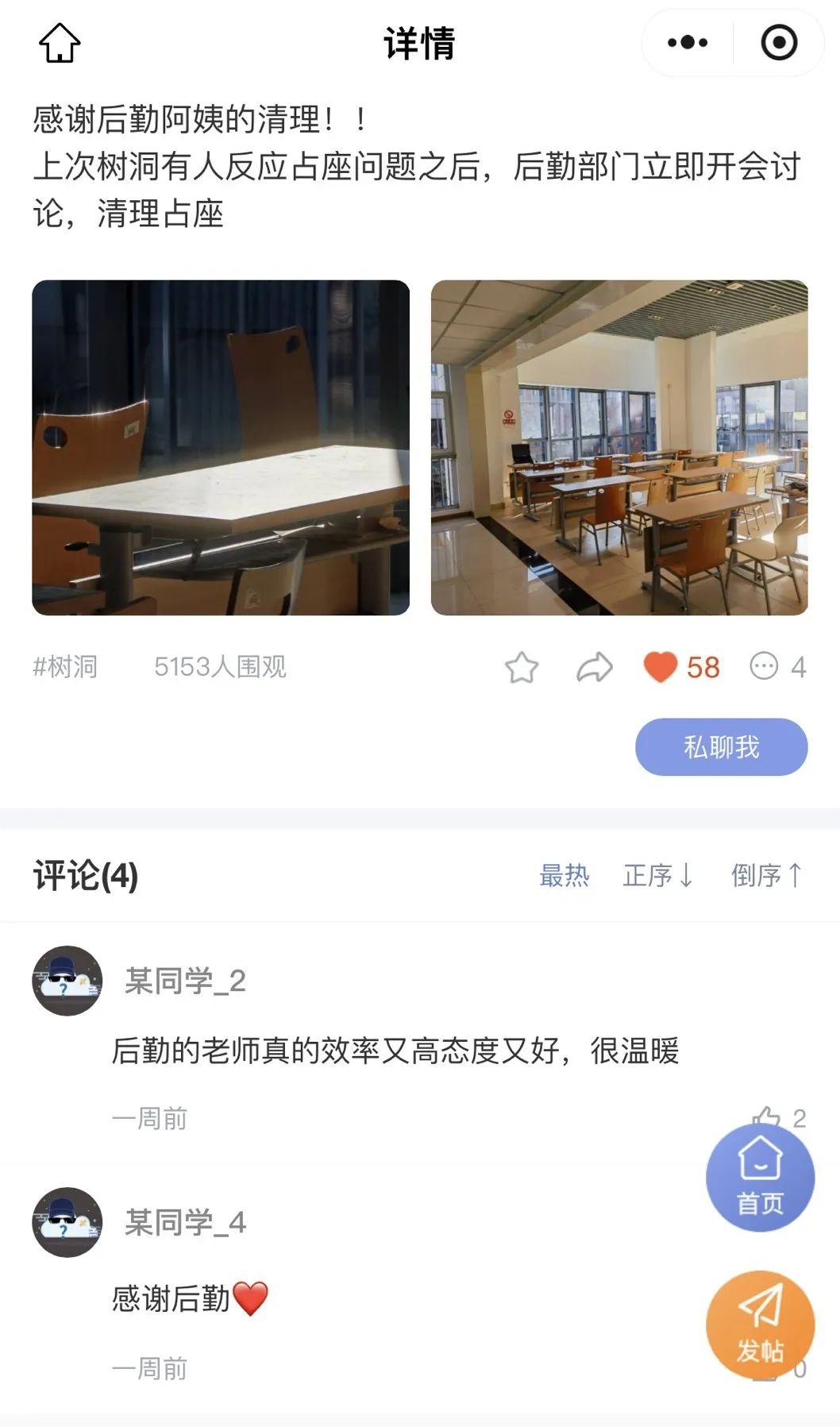 无论是食堂新菜、设施报修