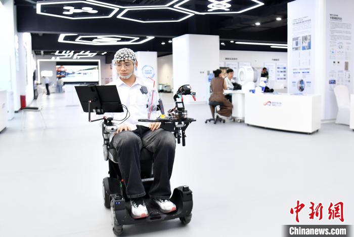 6月10日,雄安未来城市场景体验周上中博证券,工作人员演示多模态智能脑控康复轮椅。韩冰摄
