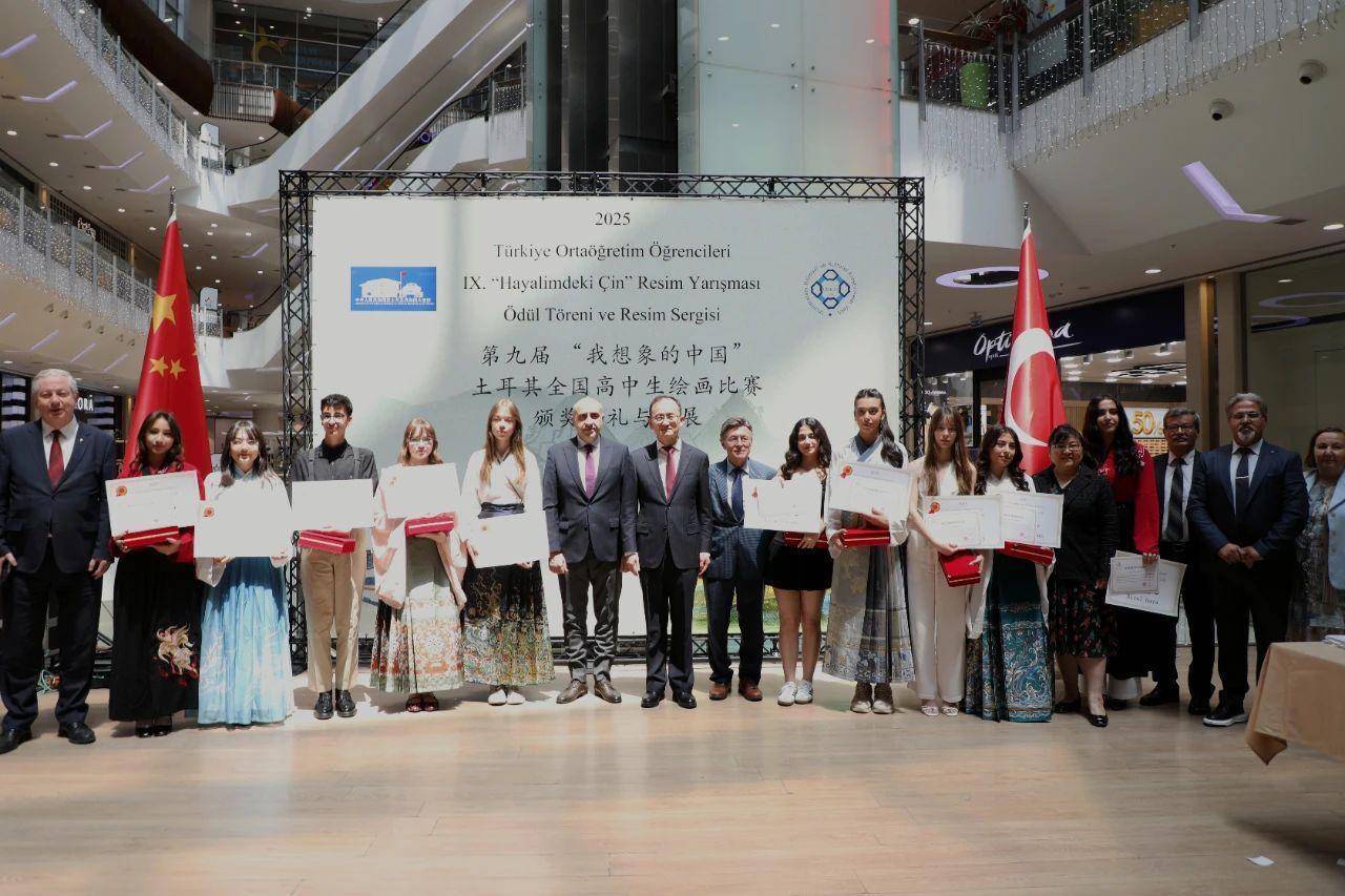 人民网安卡拉6月26日电 (记者沈钧)6月24日口袋超盘,由中国驻土耳其使馆、土耳其国际学术文化研究基金会举办的第九届“我想象的中国”土耳其全国高中生绘画比赛颁奖典礼与画展在安卡拉阿尔玛达商业中心举行。中国驻土耳其大使姜学斌、安卡拉音乐美术大学副校长巴勒什、基金会主席欧凯、土文化和旅游部官员及各界友好人士近百人出席。